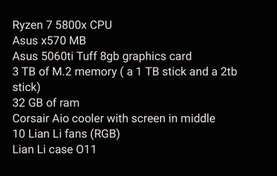 Desktop Gaming PC 5060 Ti Asus Lian Li AMD Ryzen$950The Bronx, NY