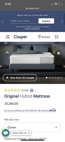 Casper Original Hybrid Queen Size Mattress$400Fremont, CA