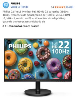 Philips 221V8LB Monitor Full HD de 22 pulgadas (1920 x 1080), frecuencia de actualización de 100 Hz, VESA, HDMI x1, VGA x1, modo LowBlue, sincronizaci$40Las Vegas, NV