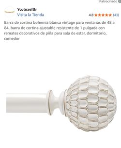 Barra de cortina bohemia blanca vintage para ventanas de 48 a 84, barra de cortina ajustable resistente de 1 pulgada con remates decorativos de piña p$20Las Vegas, NV