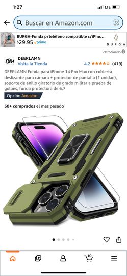 DEERLAMN Funda para iPhone 14 Pro Max con cubierta deslizante para cámara + protector de pantalla (1 unidad), soporte de anillo giratorio de grado mil$5Las Vegas, NV
