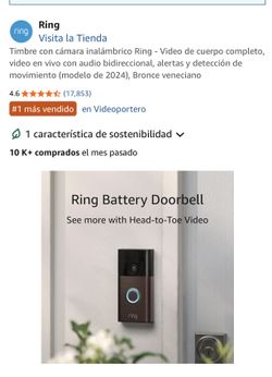 Timbre con cámara inalámbrico Ring - Video de cuerpo completo, video en vivo con audio bidireccional, alertas y detección de movimiento (modelo de 202$30Las Vegas, NV
