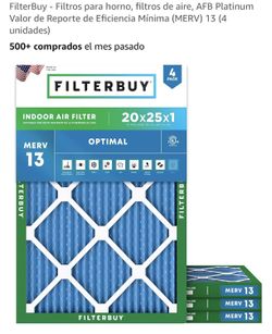 FilterBuy - Filtros para horno, filtros de aire, AFB Platinum Valor de Reporte de Eficiencia Mínima (MERV) 13 (4 unidades)$30Las Vegas, NV