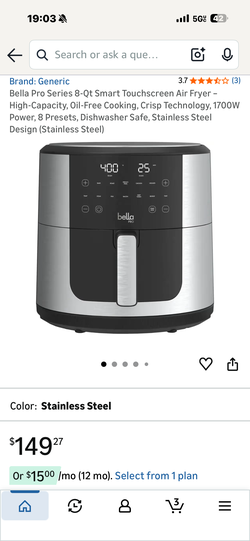 Bella Pro Series Smart Touchscreen Air Fryer$95Gresham, OR