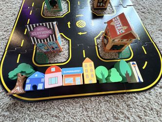 IKEA road puzzle with misc wooden city accessories$10San Diego, CA