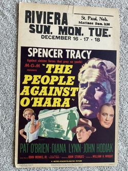 Original 1951 “People Against O’Hara” Film Poster (14”x22”) Spencer Tracy$72Baldwin Hills, CA