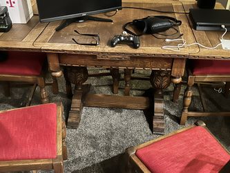Oak Draw Leaf Refectory Dining Table with 6 upholstered ladder back chairs. $299Gilbert, AZ
