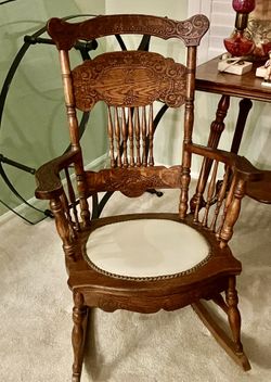 Antique Double Pressback Rocker. with Spindles and Ivory leather Seat.$149Gilbert, AZ