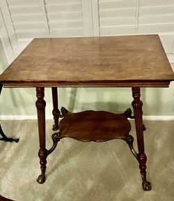 Antique solid oak parlor table with brass foo dogs and claw feet.$149Gilbert, AZ