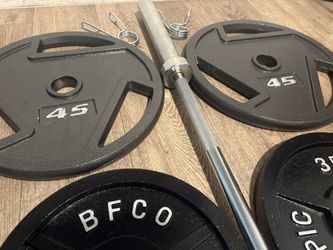 BRAND NEW Olympic Silver Curl Bar With Cooper Bearings & Weight Plates Pairs From 5s To 35s # (Total: 170 lbs)$255Los Angeles, CA
