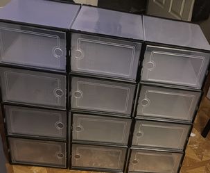12 CLEAR STACKABLE SHOE BOXES CONTAINERS $75San Antonio, TX