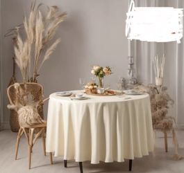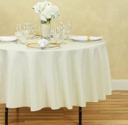 90inch Round Table Cloth In Ivory Polyester Table Cover Tablecloth, Stain and Wrinkle Resistant Washable Fabric Table 5pc For Party Wedding Banquet $55Chino Hills, CA