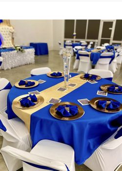 120inch Round Polyester Table Cloth In blue (5Pack)Tablecloth Table Cover Party Wedding Linen Easy laundering in your home washing machine, Easy care$55Chino Hills, CA