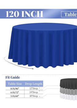 5 Pack Round Table cloth - 90Inch Royal Blue Polyester Table Cover,Stain and Wrinkle Resistant Washable Fabric Table Wedding Party Banquet$55Chino Hills, CA