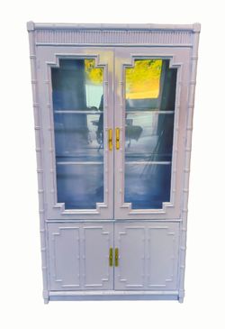Vintage fauxbamboo Hollywood regency style hutch curio glass display cabinet storage by Thomasville$795Longwood, FL