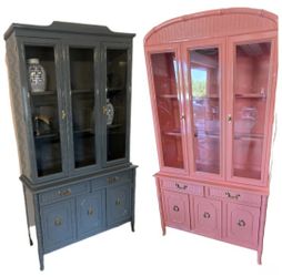 Faux bamboo Hollywood Regency style vintage Broyhill hutch china cabinet buffet$575Longwood, FL