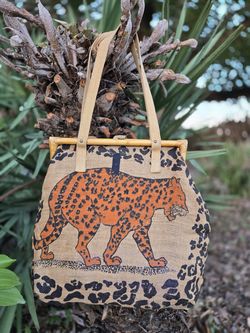 Handmade boho burlap bamboo tiger leopard painted bag purse hobo style made in India$60Longwood, FL