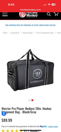 Warrior Pro Player Medium 28in. Hockey Equipment Bag - Black/Gray$60Las Vegas, NV