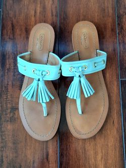 Coach Sheena Women's Mint Green Leather Tassel Flip Flops Sandals 8.5$50Mukilteo, WA
