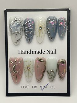 Handmade Reusable Press On Nails Moon Star Decor - MEDIUM$25San Gabriel, CA