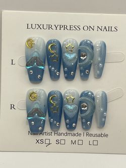 Handmade Reusable Press On Nails Blue Mermaid Moon Decor - X SMALL$25Pasadena, CA
