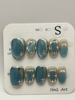 Hand Made Teal Aqua Reusable Press On Nails - X SMALL$25Pasadena, CA