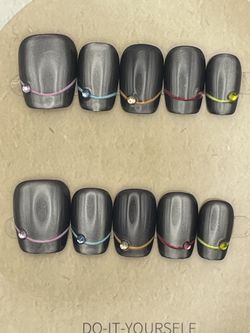 Reusable Press on nails - handmade charcoal gray cats eye with gemstone - MEDIUM$25Arcadia, CA