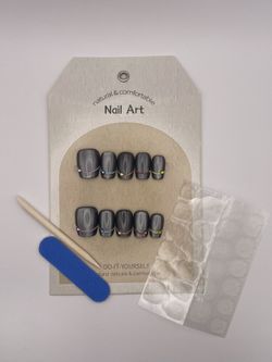 Reusable Press On Nails - Handmade Charcoal Gray with Gemstones - LARGE$25Pasadena, CA