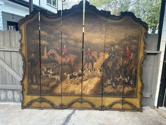 vintage English hunting scene Wood/ leather Mural$500Houston, TX
