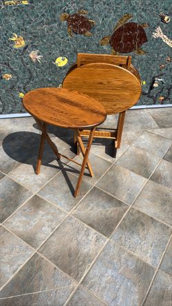 4 Heavy Oak TV Trays With Rack $30Irwindale, CA