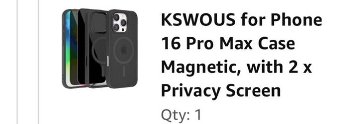 IPhone 16 Pro Max Case Magnetic, with 2 x Privacy Screen$6Alpharetta, GA