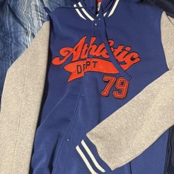 Blue Red and Grey Long Sleeve Button Up Varsity Jacket $10Newberry, SC