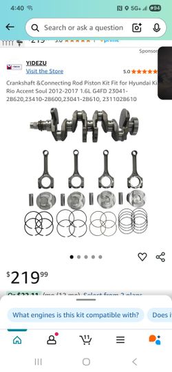 Crankshaft &Connecting Rod Piston Kit Fit for Hyundai Kia Rio Accent Soul 2012-2017 1.6L G4FD $100Las Vegas, NV