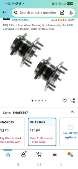 TRQ 2 Piece Rear Wheel Bearing & Hub Assembly Set AWD Compatible with 2004-2010 Toyota Sienna