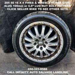 205 50 16 X 4 Tires & Wheels Custom With 4lug 100mm Or 4lug 4.5" Lug Nut Bolt Pattern. $250Palo Alto, CA