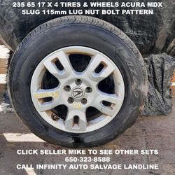 235 65 17 X 4 Tires & Wheels Off Acura MDX With 5lug 115mm Lug Nut Bolt Pattern. $400Palo Alto, CA
