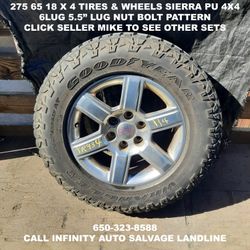 275 65 18 X 4 Tires & Wheels Off GMC Sierra 4x4 Pu With 6lug 5.5" Lug Nut Bolt Pattern. $300Palo Alto, CA