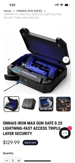 ONNAIS IRON MAX GUN SAFE 0.2S LIGHTNING-FAST ACCESS TRIPLE-LAYER SECURITY$95South Pasadena, CA