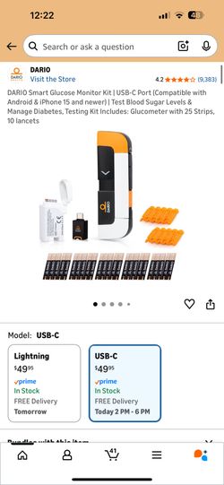 DARIO Smart Glucose Monitor Kit | USB-C Port (Compatible with Android & iPhone 15 and newer) | Test Blood Sugar Levels & Manage Diabetes, Testing Kit $25Anaheim, CA