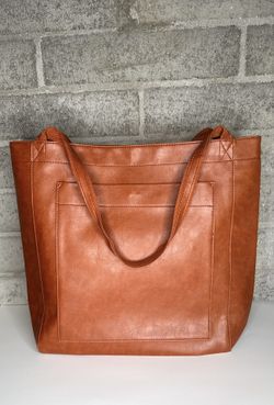 Cognac Vegan Leather Tote Bag Large Work Laptop Purse Snap closure$30Phoenix, AZ