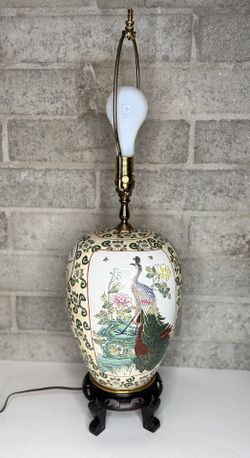 Vintage Peacock Ginger Jar Table Lamp 30” Tall Porcelain + Wood Base, Brass Neck$80Phoenix, AZ