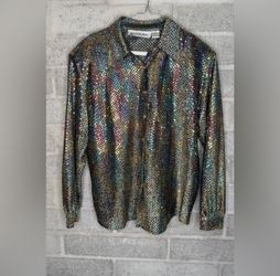 Vintage Made in Korea Sequin Disco Shirt Button Up Long Sleeve Party Top 12P$40Phoenix, AZ