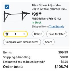 Titan Fitness Adjustable Depth 52" Wall Mounted Pull Up Bar, 14" or 22" From Wall, Rated 400 LB, Home or Garage$50Imperial Beach, CA