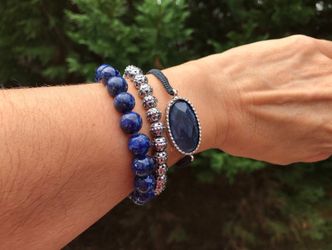 Stretch Bracelet Set, Bead Bracelet, Gemstone Bracelets, Blue, Navy Blue, Gift for her, Wisdon Bracelets, Handmade, Sliding Knot Bracelet$28Apex, NC
