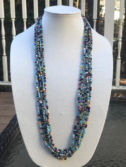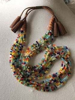 Colored Beaded Necklace, Multi strands 24’ Leather Cord,$30Apex, NC