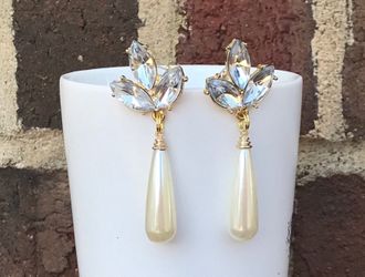Romantic Earrings, Bridal Drop Earrings/Dangling Earring/Wedding Earring/Statement Bridal Earrings, Gold Crystal Stud Earrings/$29Apex, NC