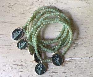 Green Bracelets / Gold Bracelet / Bohemian Beaded Necklaces / Bracelet With Charms Hanging/Beaded Stretch Bracelet/Nature Bracelet $25Cary, NC