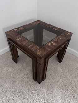 Solid wood end table w glass top sturdy refinish or use as is$25Bothell, WA