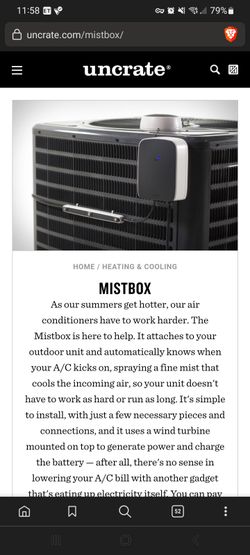 Mistbox AC Condenser Water Mister$140Rocklin, CA