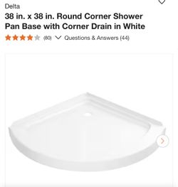 38 in. x 38 in. Round Corner Shower Pan Base with Corner Drain in White$215Chino, CA
